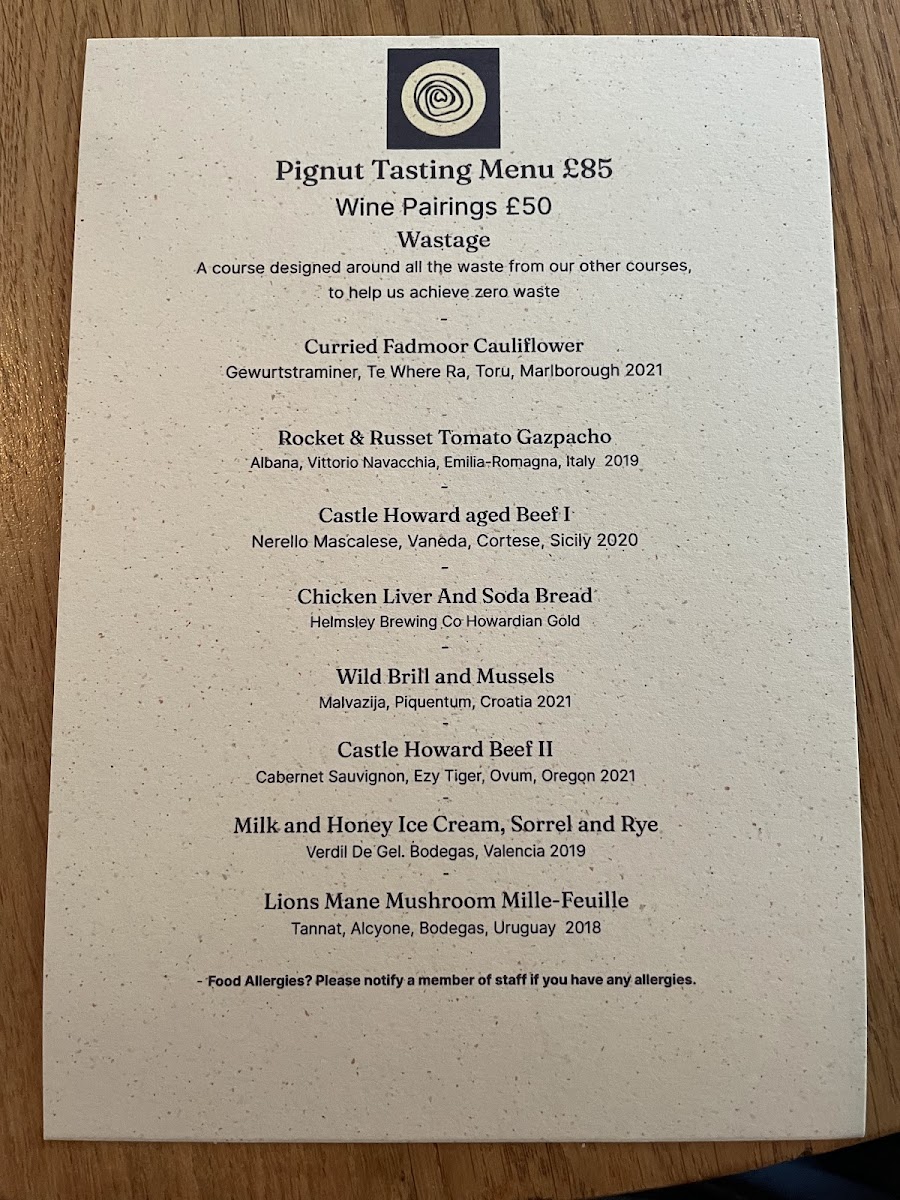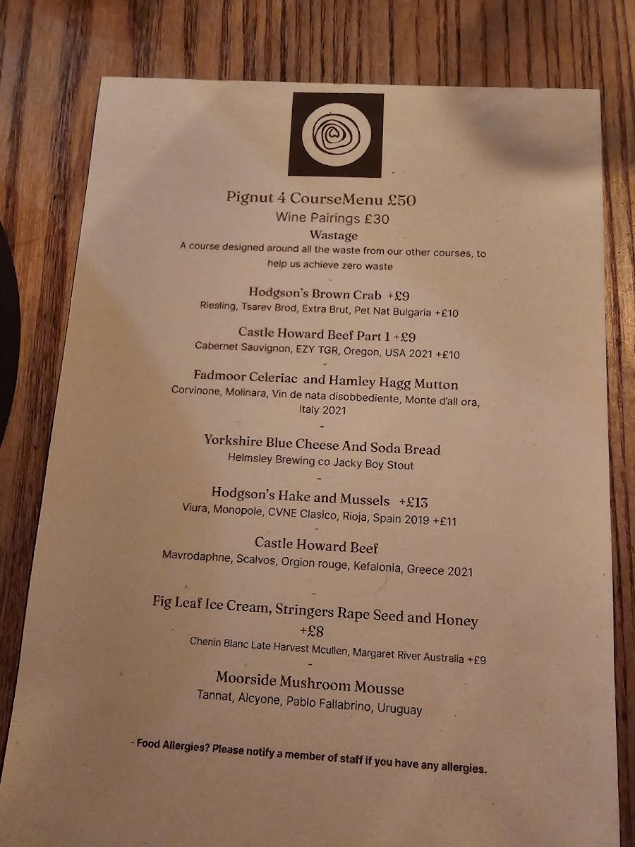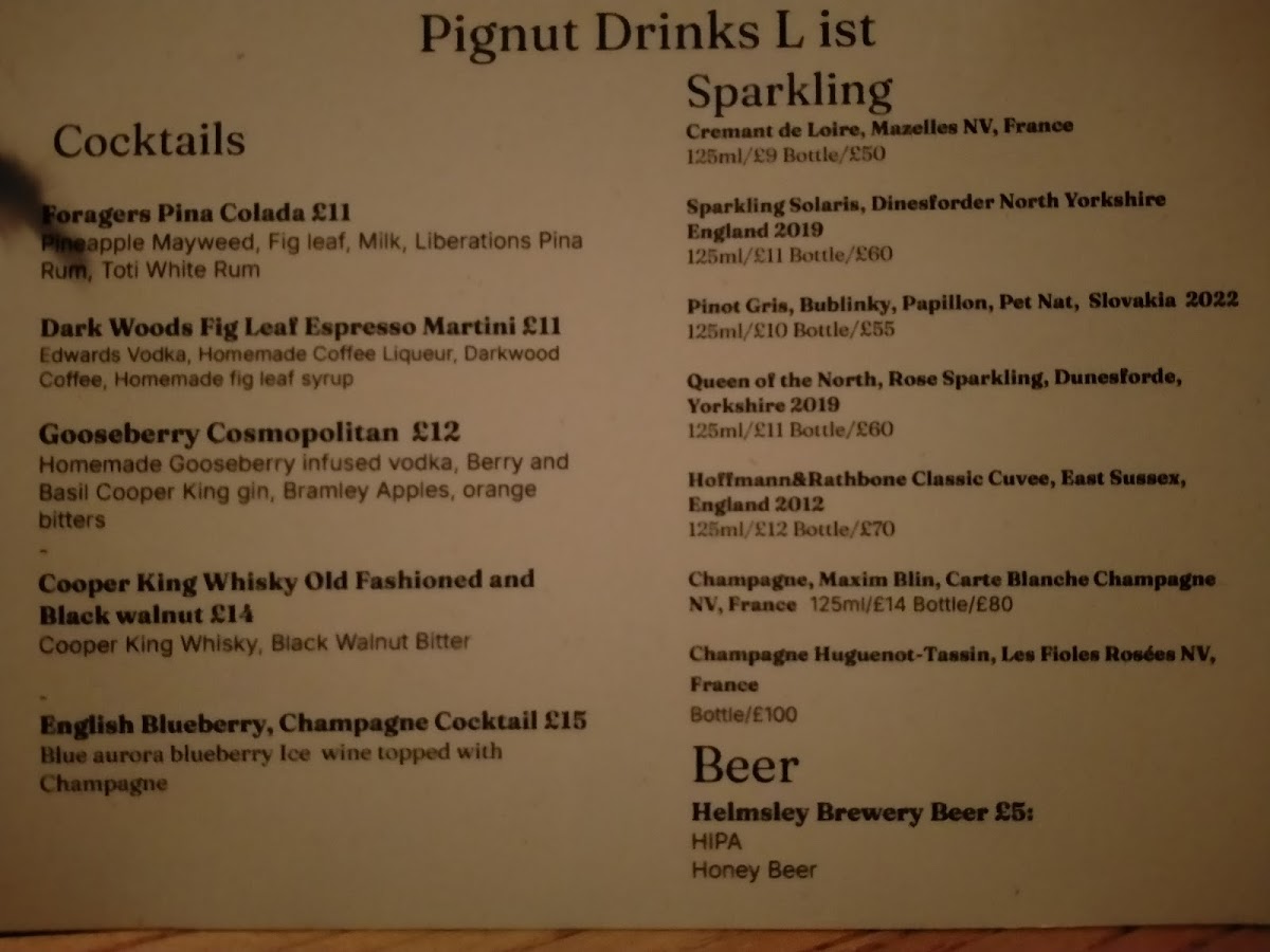 At Pignut & The Hare, the menu reads like a celebration of both inventive cocktails and locally inspired dishes, offering a mix that is as refined as it is approachable. The cocktail selection is a standout, featuring drinks such as the Foragers Pina Colada, the intriguing Dark Woods Fig Leaf Espresso Martini, and the bright Gooseberry Cosmopolitan, alongside classics like the Cooper King Whisky Old Fashioned And Black Walnut and the English Blueberry Champagne Cocktail. Sparkling wine enthusiasts are well catered for with options like Cremant De Loire, Mazelles Nv, France, the delicate Sparkling Solaris, Dinesforder North Yorkshire England 2019, and the playful Bublinky, Papillon, Pet Nat, Slovakia 2022, while the Queen Of The North, Rose Sparkling, Dunesforde, Yorkshire 2019 and Hoffmann&Rathbone Classic Cuvee, East Sussex, England 2012 provide elegant alternatives. The food menu complements these beverages perfectly, with dishes that celebrate local ingredients and thoughtful combinations. Highlights include the fresh Chalk Stream Trout And Lindisfarne Oyster, the garden-inspired Helmsley Walled Garden Herbs And Vegetables, and the richly satisfying Castle Howard Pork Belly And Newfields White Onion. For those who enjoy traditional British comfort with a twist, the Fountains Gold Cheddar And Soda Bread is a must-try. Each offering is clearly crafted to provide balance and flavor, making the menu not only a showcase of quality ingredients but also a journey through taste, where cocktails and cuisine harmonize seamlessly. Whether indulging in a sparkling wine or sampling a creatively prepared plate, diners are invited to experience a menu that is both approachable and sophisticated, perfectly reflecting the character of the Hare Inn and the artistry of Pignut & The Hare.